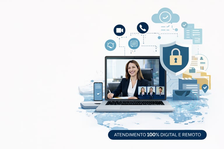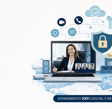 Esse modelo permite atender clientes em qualquer localidade, com otimização de tempo, redução de custos e foco total na estratégia jurídica.
